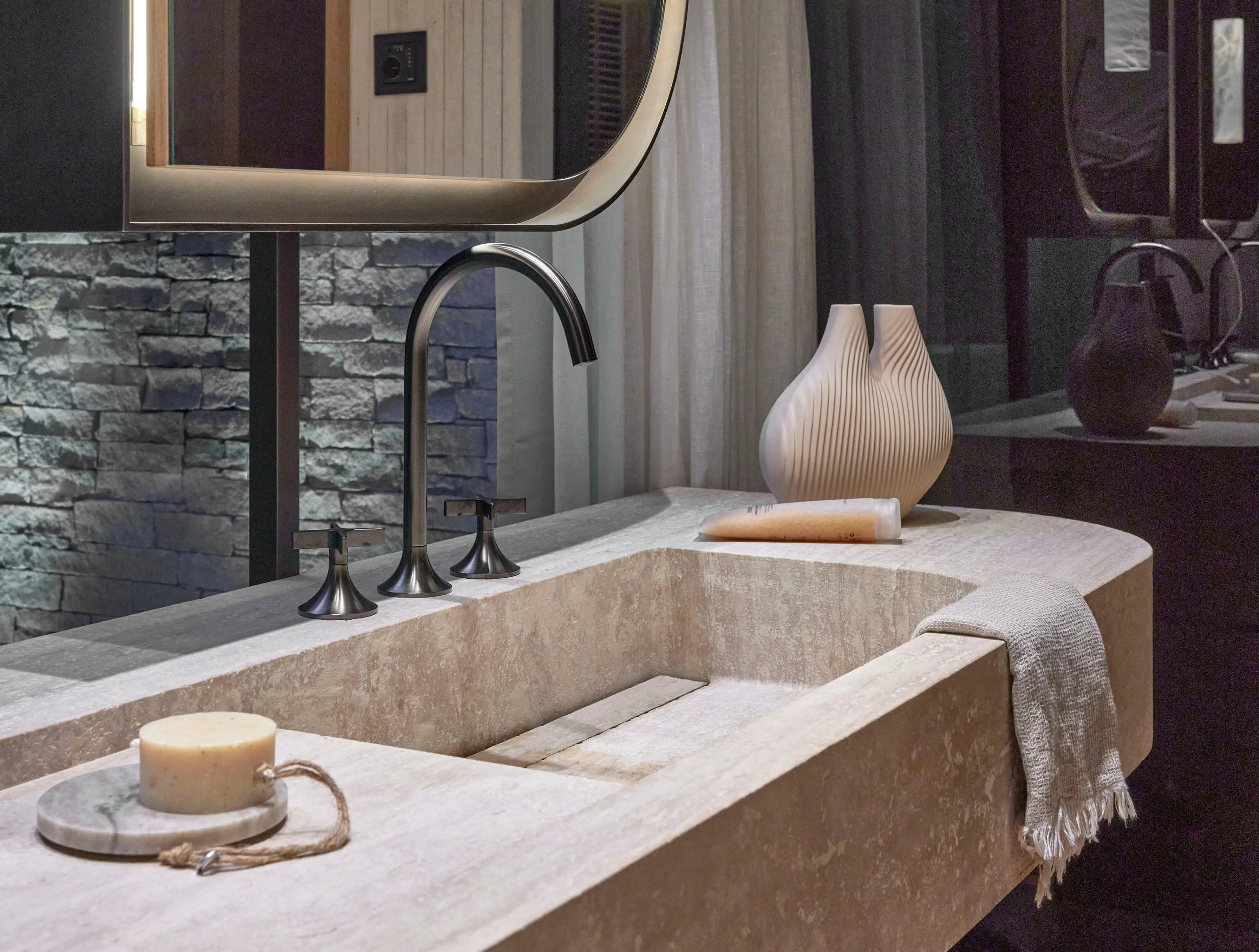Materialien, Texturen und Farben folgen der Natur – mit geerdeten Tönen, rohen Oberflächen und fein abgestimmten Kontrasten.
