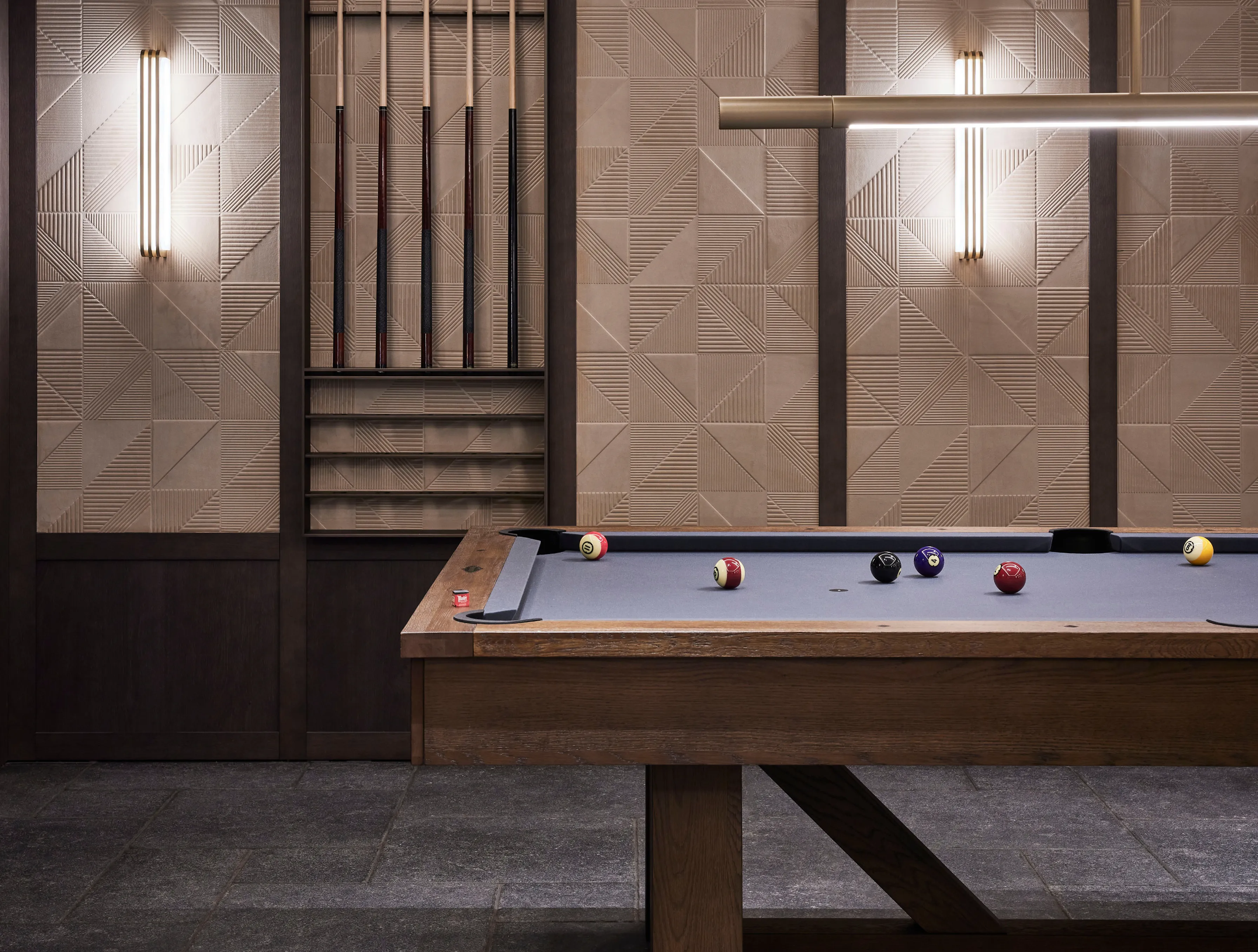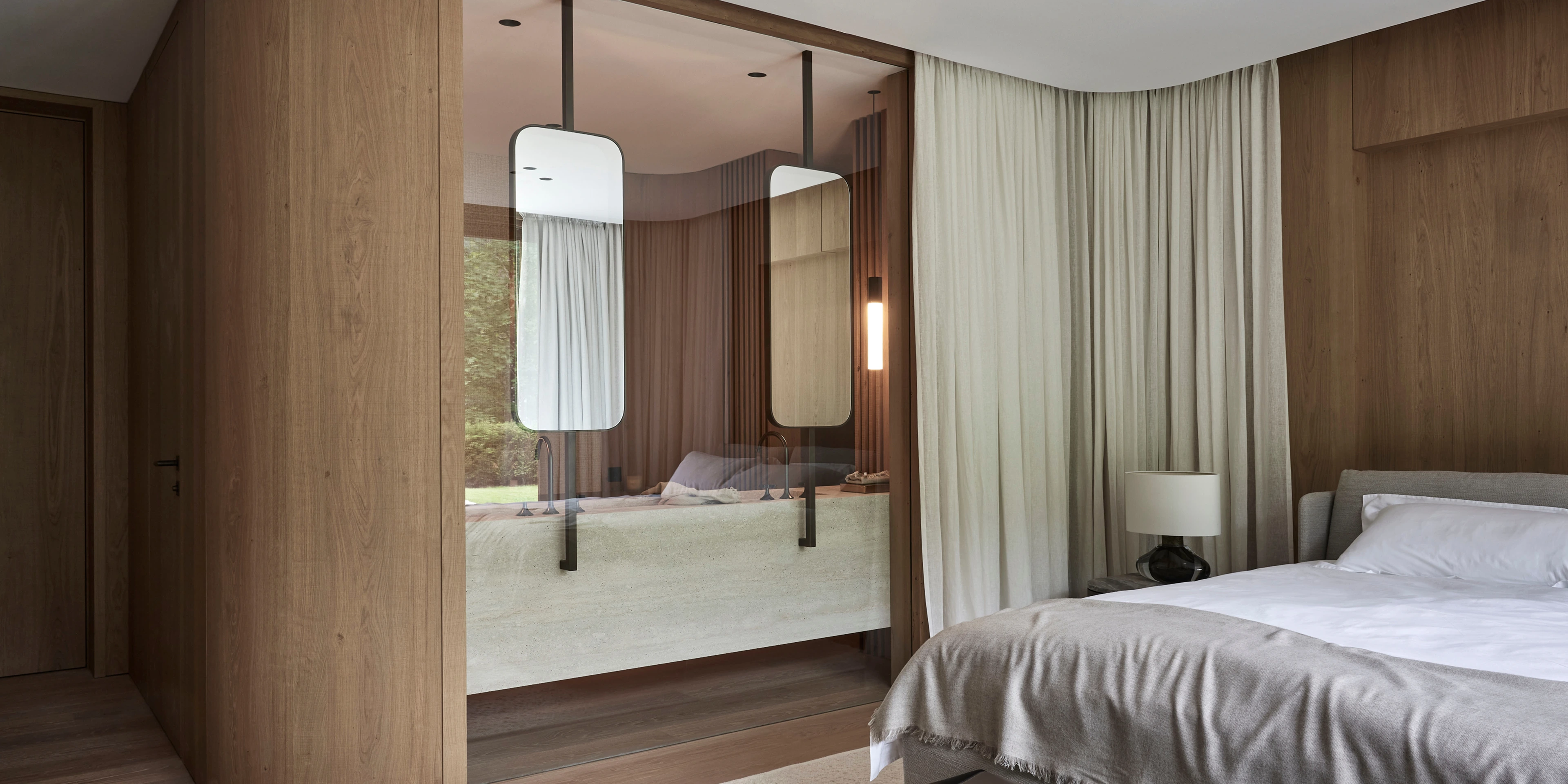 Die Innenarchitektur greift die Formensprache der Umgebung auf und transformiert sie in ein bewusst gestaltetes Wohnkonzept: Private Räume und Gästebereiche wurden so angeordnet, dass sie sowohl Intimität als auch gemeinsames Erleben ermöglichen.