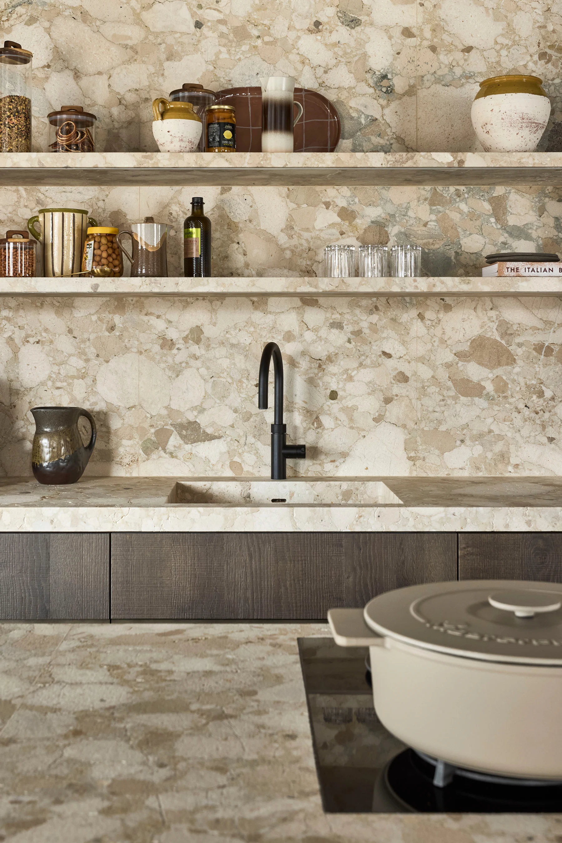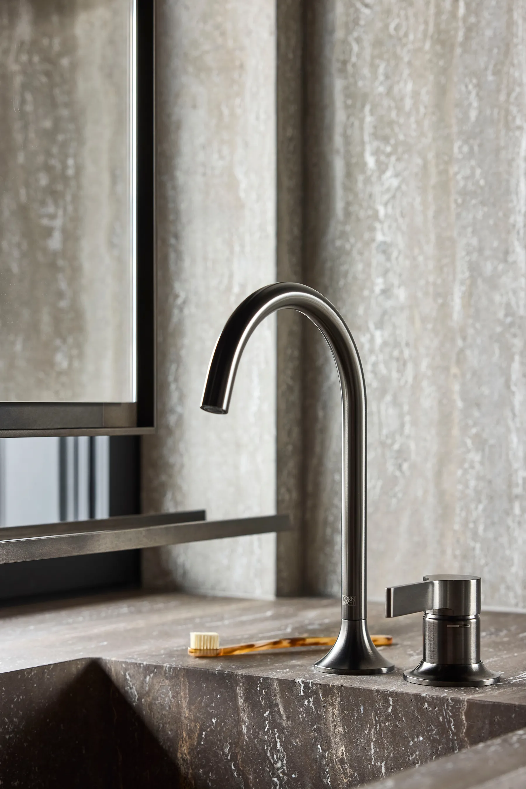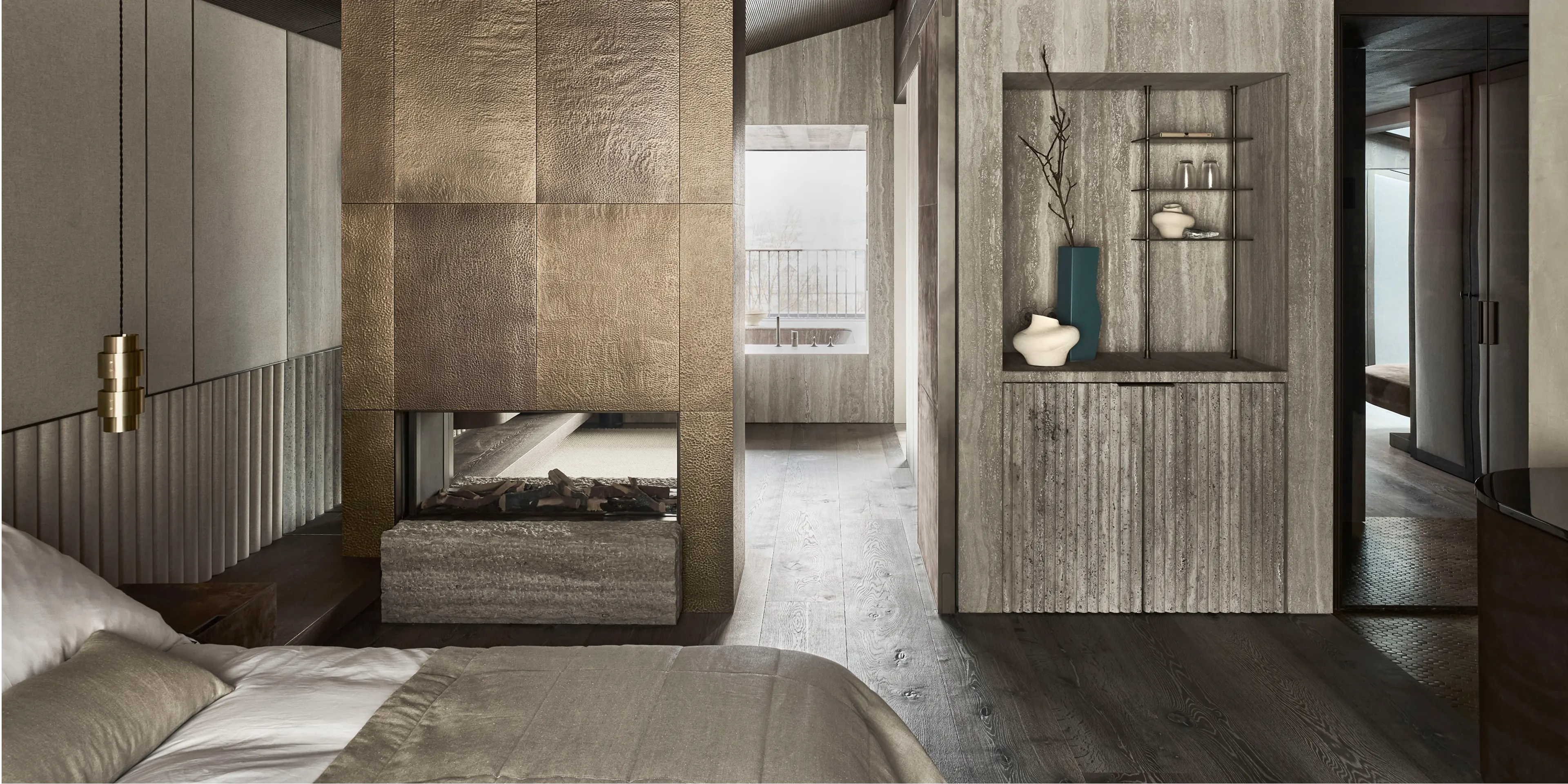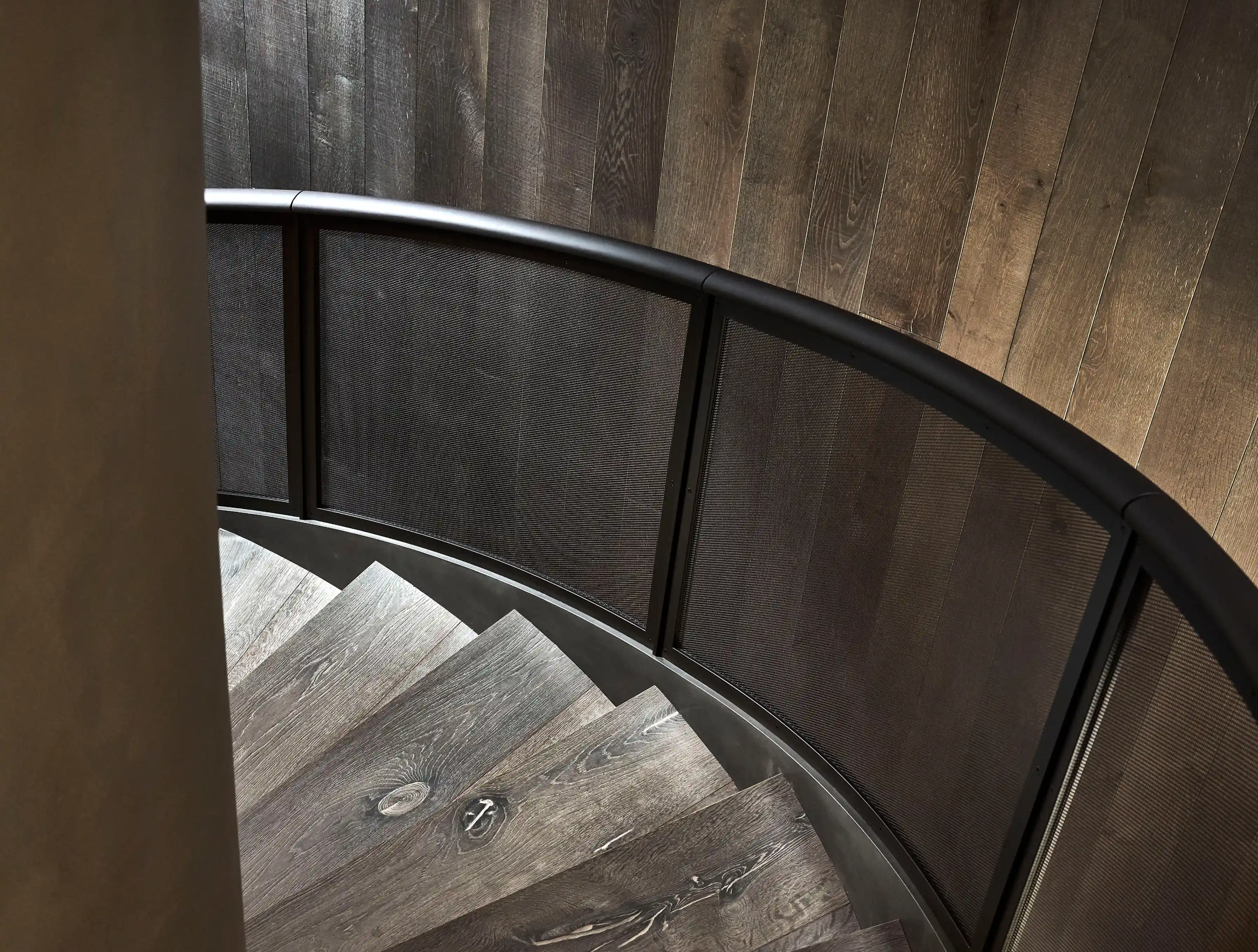 Das über vier Etagen verlaufende Haus bietet durchdachte Raumkonzepte für jede Lebenssituation. Individuelle Rückzugsorte, großzügige Gästezimmer sowie Lift und Holztreppe sorgen für barrierefreien Komfort. Bernd Gruber setzte auf eine Innenarchitektur klarer Linien, die sich subtil an die natürliche Umgebung und die Bedürfnisse der Bewohner anpassen.