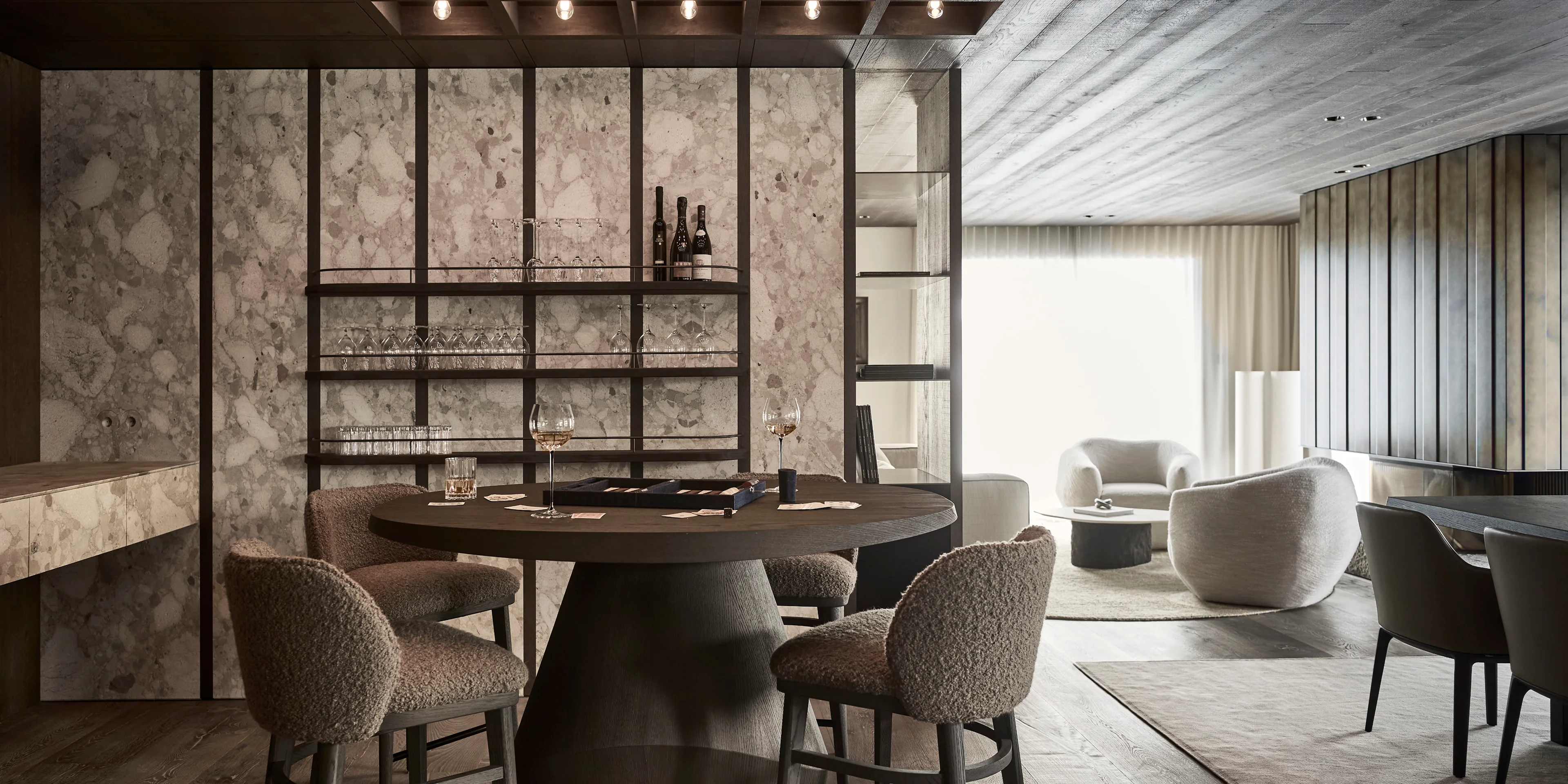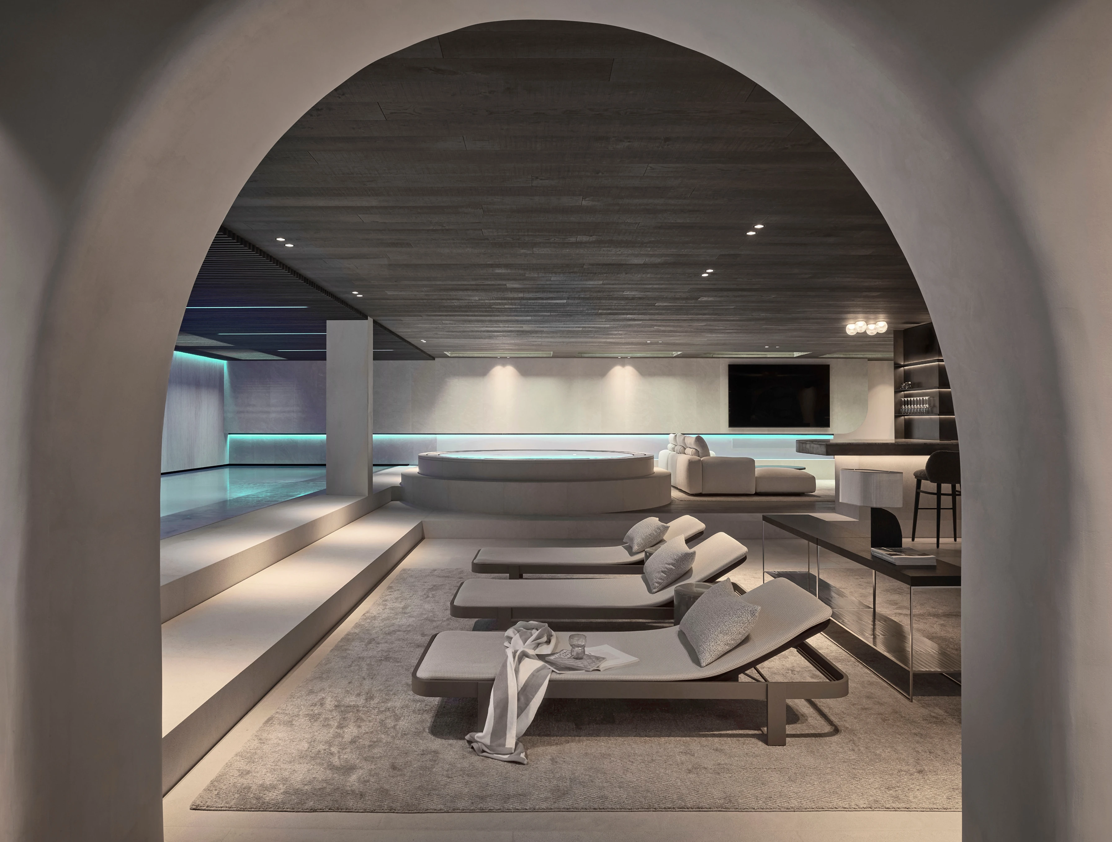 Das Herzstück: ein luxuriöser Wellness- und Spa-Bereich im Untergeschoss – mit Infinity-Pool, Jacuzzi aus Naturstein und weitläufigem Lounge-Bereich, in dem man Zeit und Raum vergessen darf.