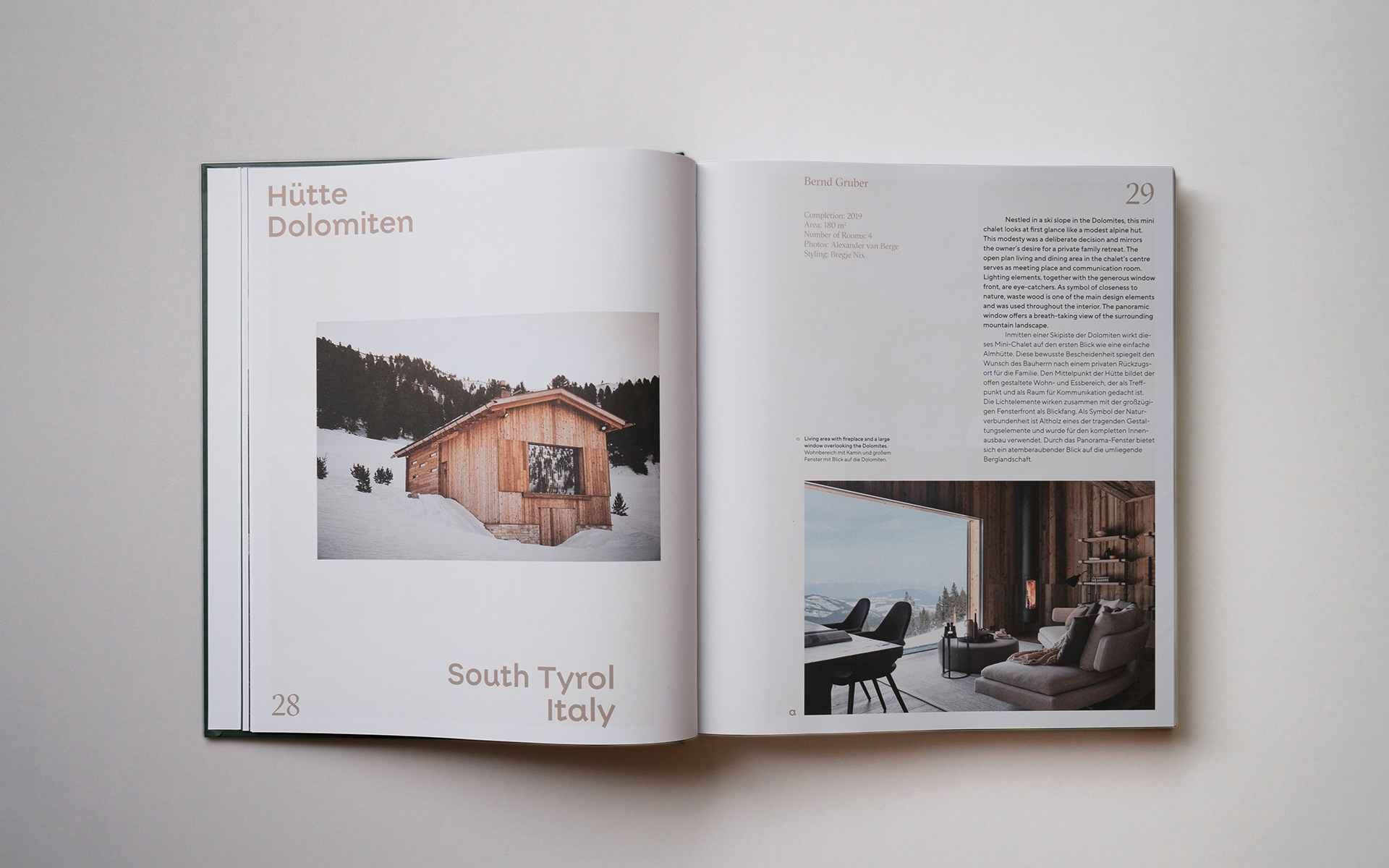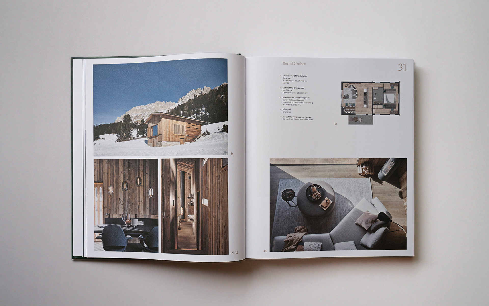 Mal aufregend kontrastreich, mal harmonisch ganzheitlich, hell oder dunkel, modern oder klassisch, pur oder in Kombination mit anderen Materialien – die ausgewählten Chalets strahlen immer eine warme, schützende und heimelige Atmosphäre aus.